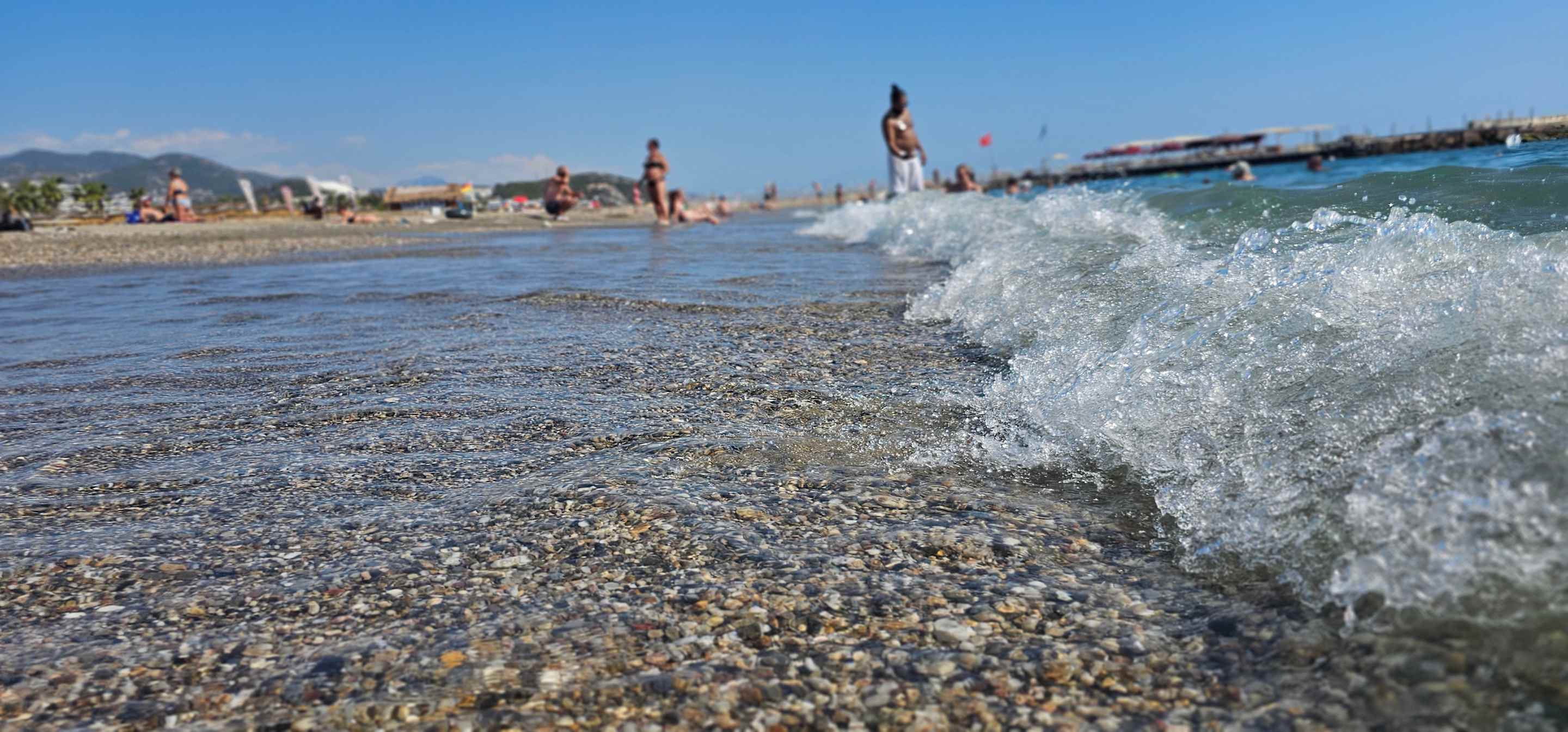 Sand und Kies. Nur bei starken Wellen ist es nicht so angenehm darüber zu rutschten, aber ansonsten war es für uns kein Problem. Ohne Badeschuhe völlig ok