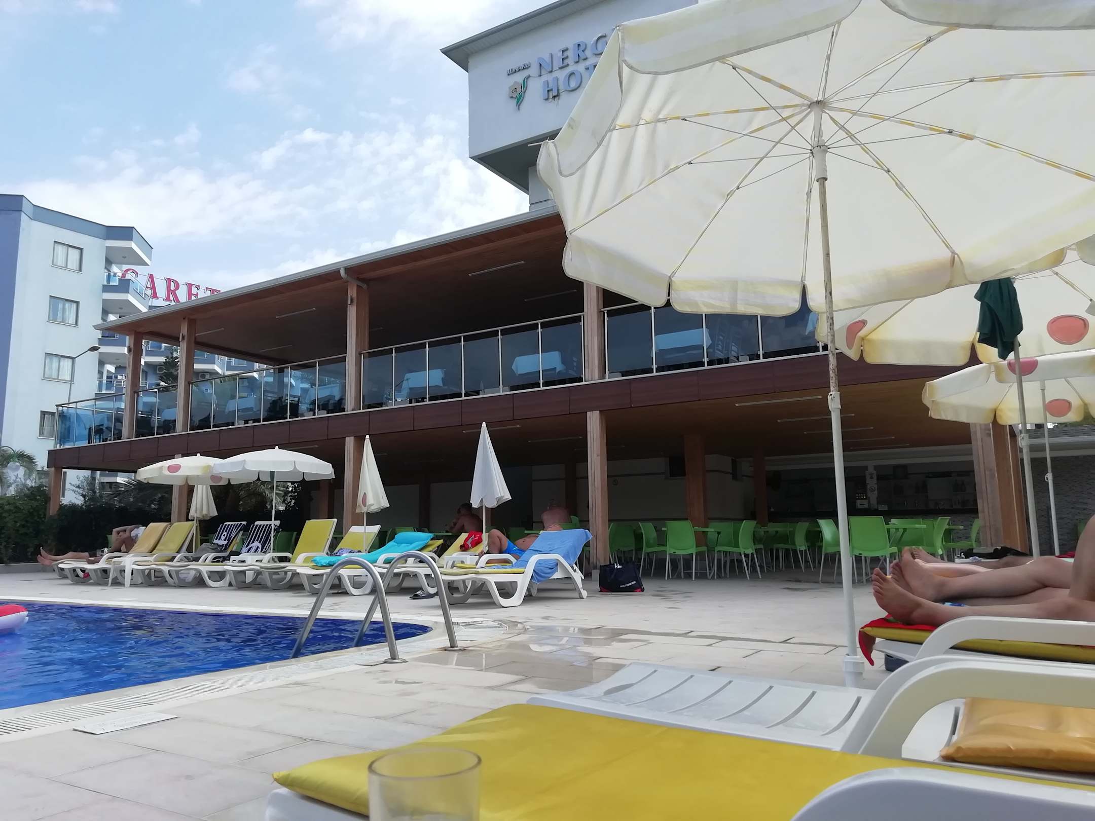 Pool mit Liegen und Bar.