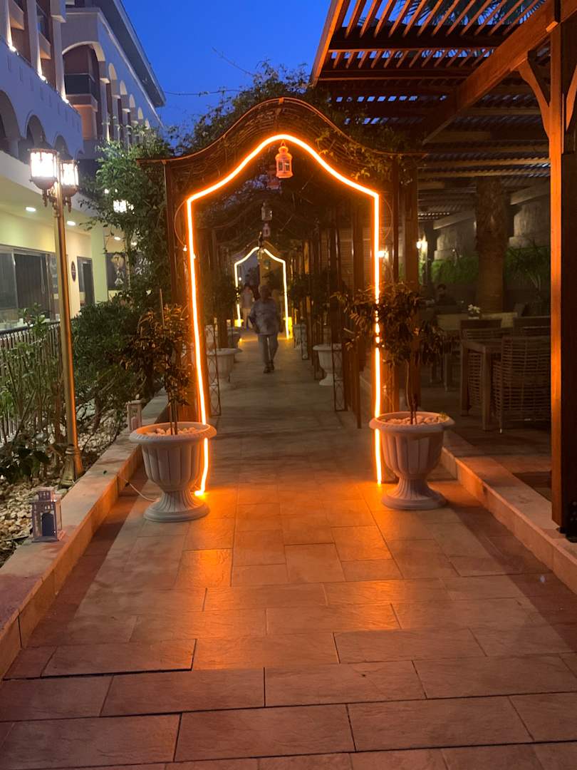 Abends netter Eingang am Abend zur Poolbar