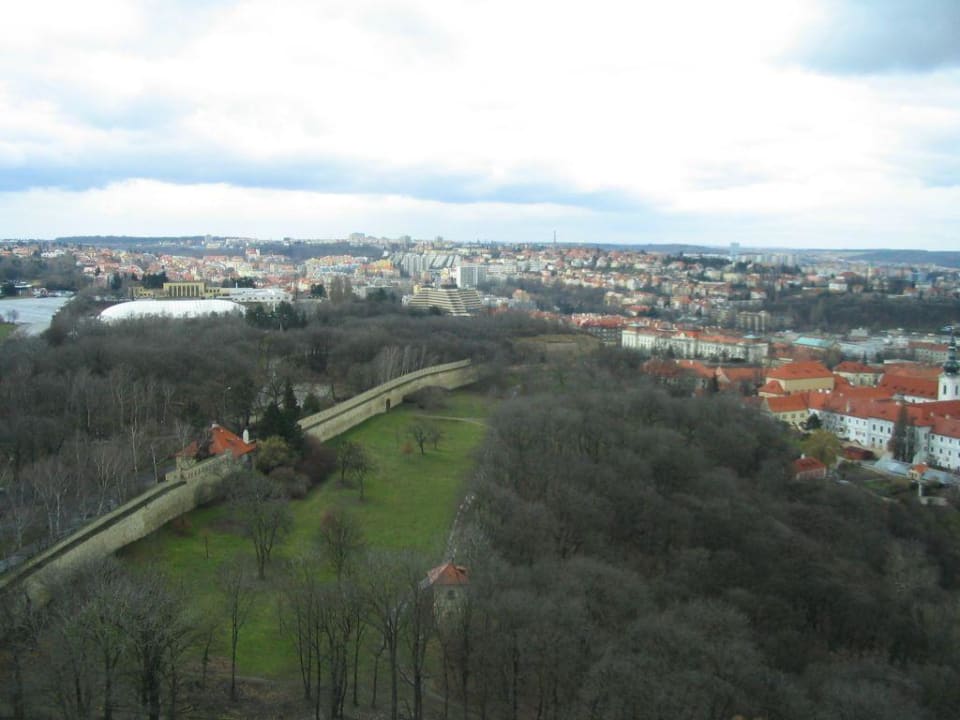Hotelansicht vom Petrin Turm auf dem PetrinhügelDas Hotel ist unübersehbar ca. in der Mitte des Bildes