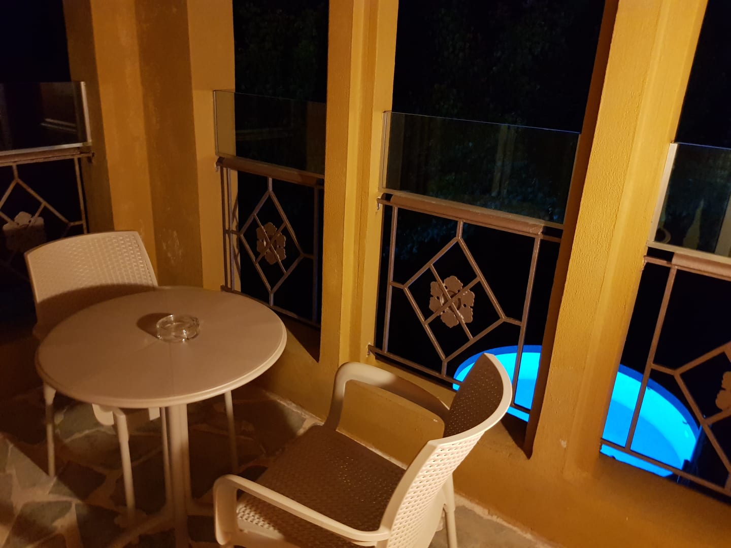 ZimmerUnser Balkon - gut überdacht, so dass wir im Schatten sitzen konnten, genial - Mückenkerze war sinnvoll...........