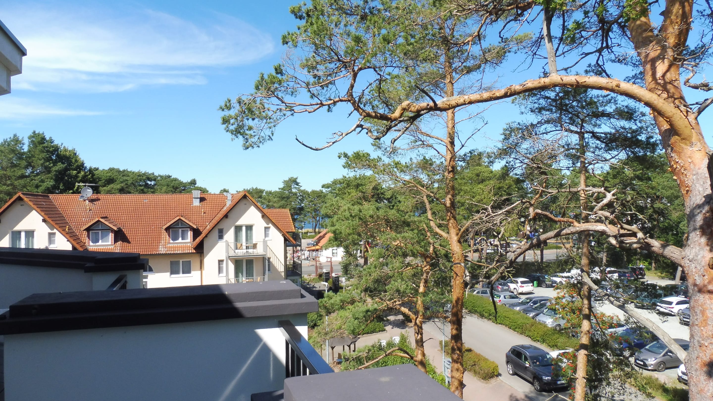 AusblickBlick vom Boardinghaus 2 Dachterrasse in Richtung Meer (1 Hotel, Hauptstraße und Kurplatz liegen noch dazwischen - ca. 150 m)