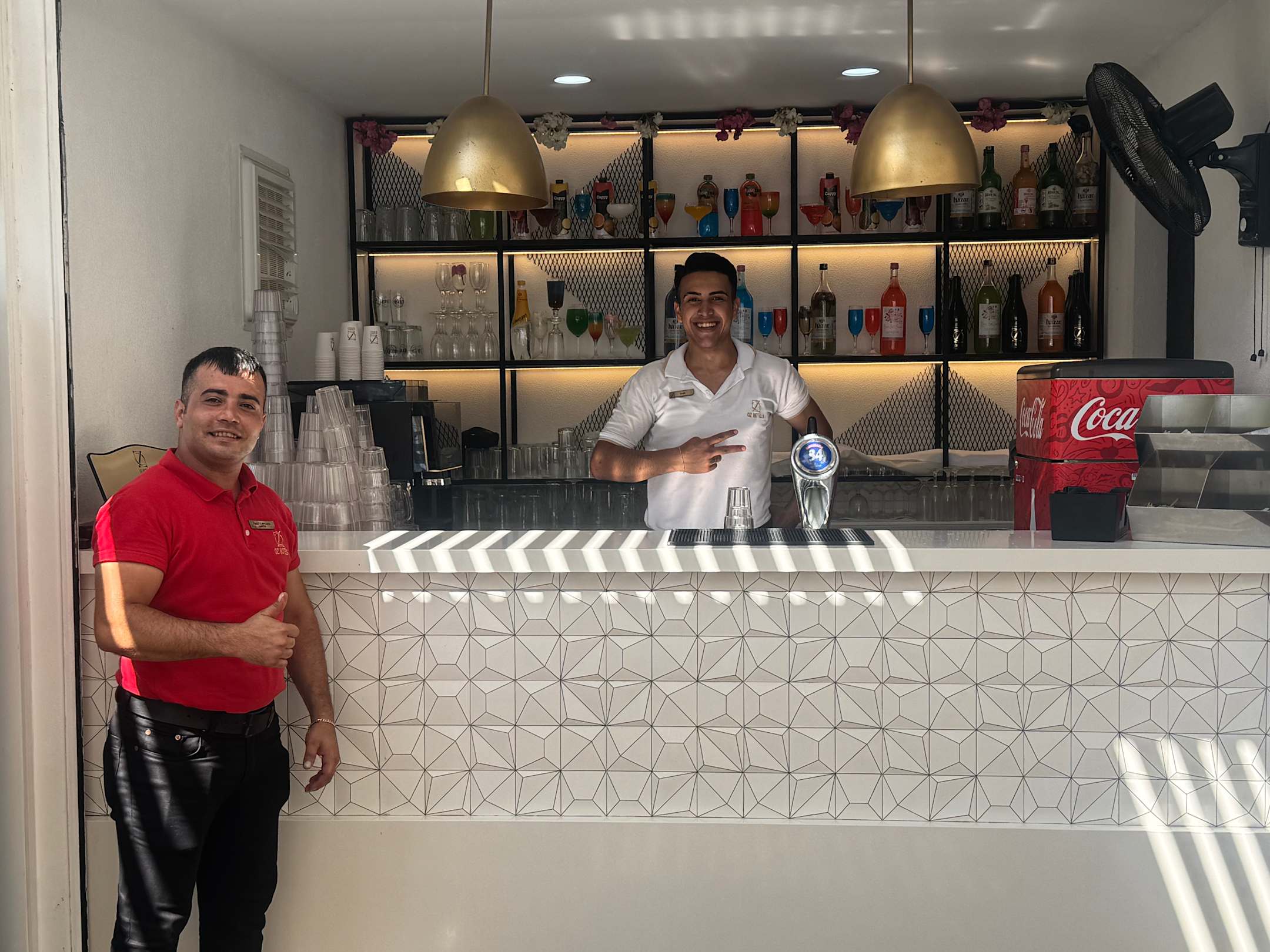 In rot Ömer, der Chef und hinter der Theke ist Can für die Getränke zuständig