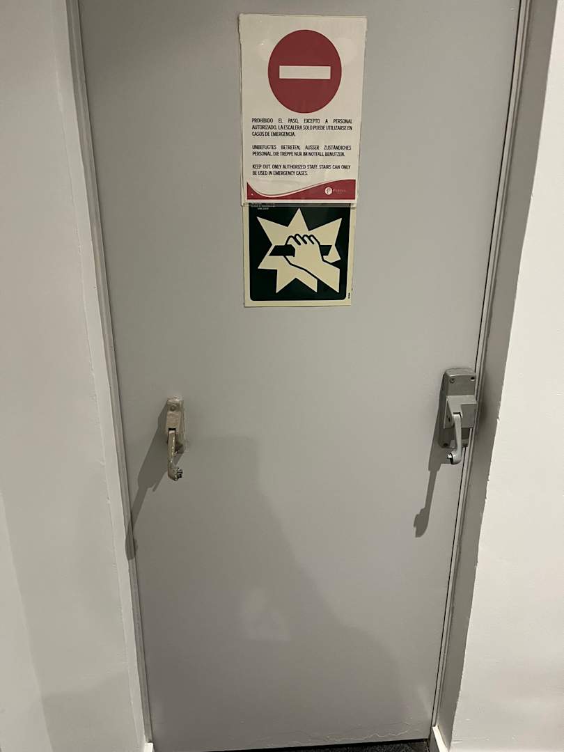 Am Notausgang fehlt die komplette Stange in der Mitte!!!