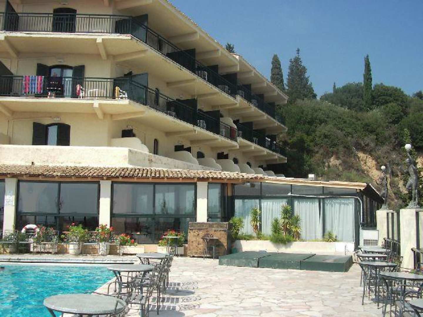 Hotel Paleokastritsia 2Teil des Hotels mit Speißesall und Terrasse mit dem ersten Pool