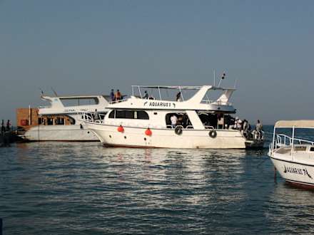 Tauch-/Ausflugsboot der ansässigen Tauchbasis Aquarius