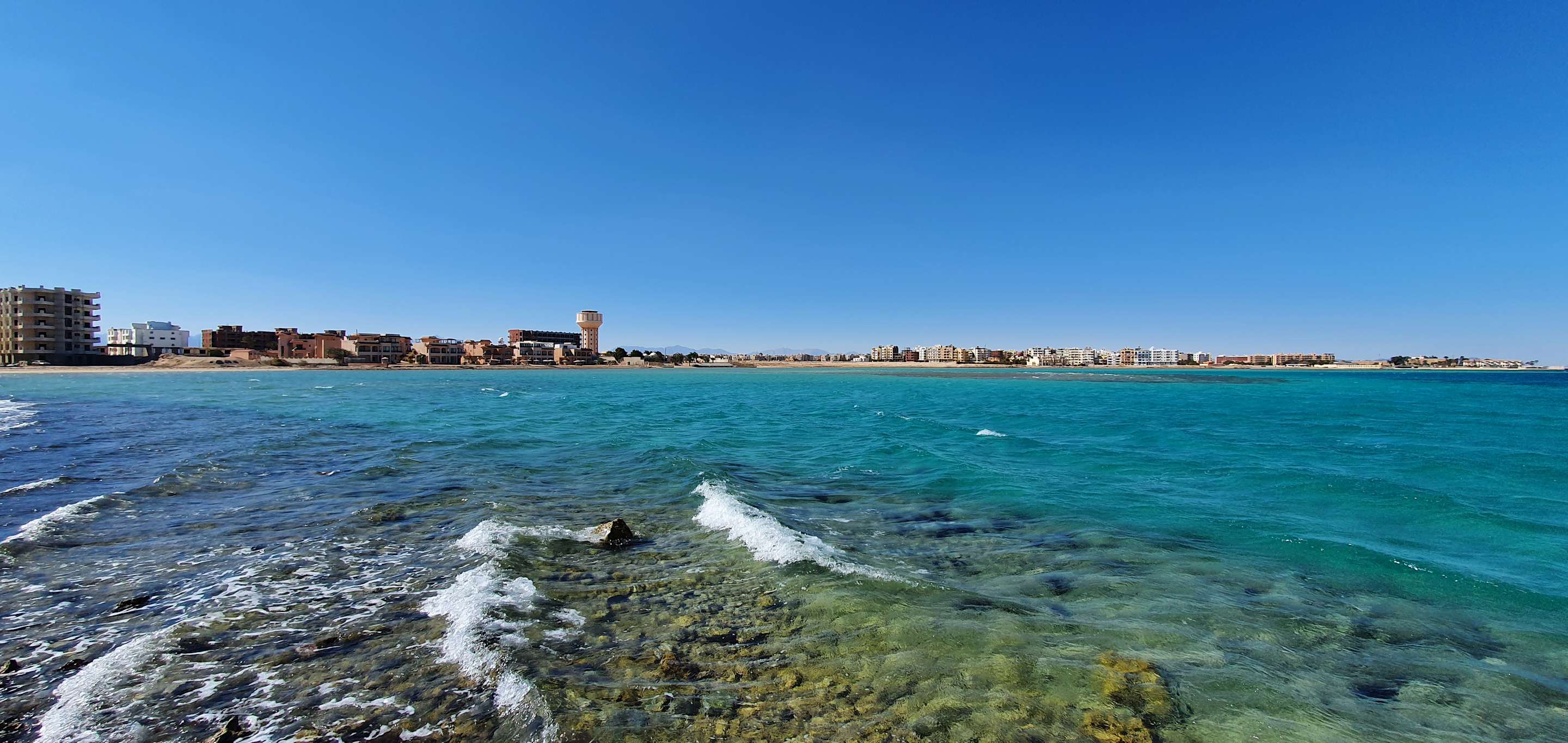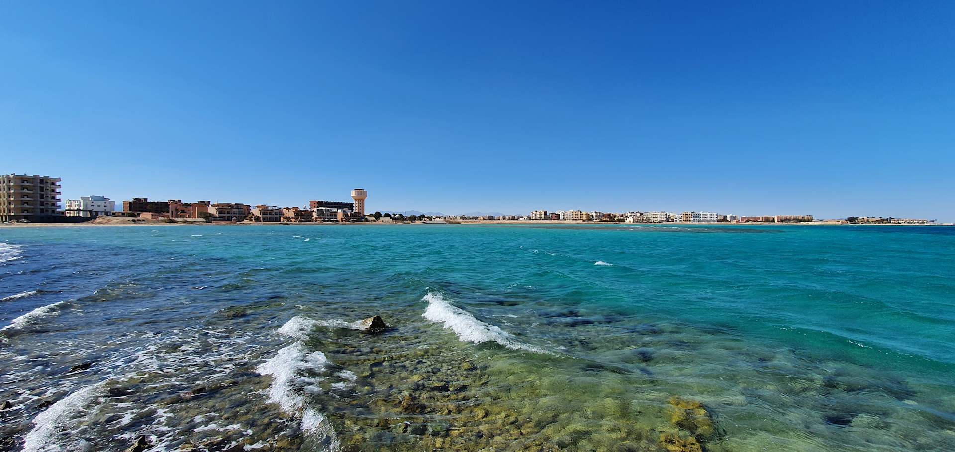 Links vom Strand aus