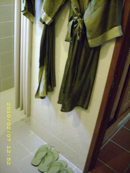 Mit Schlappen und Bademäntel!