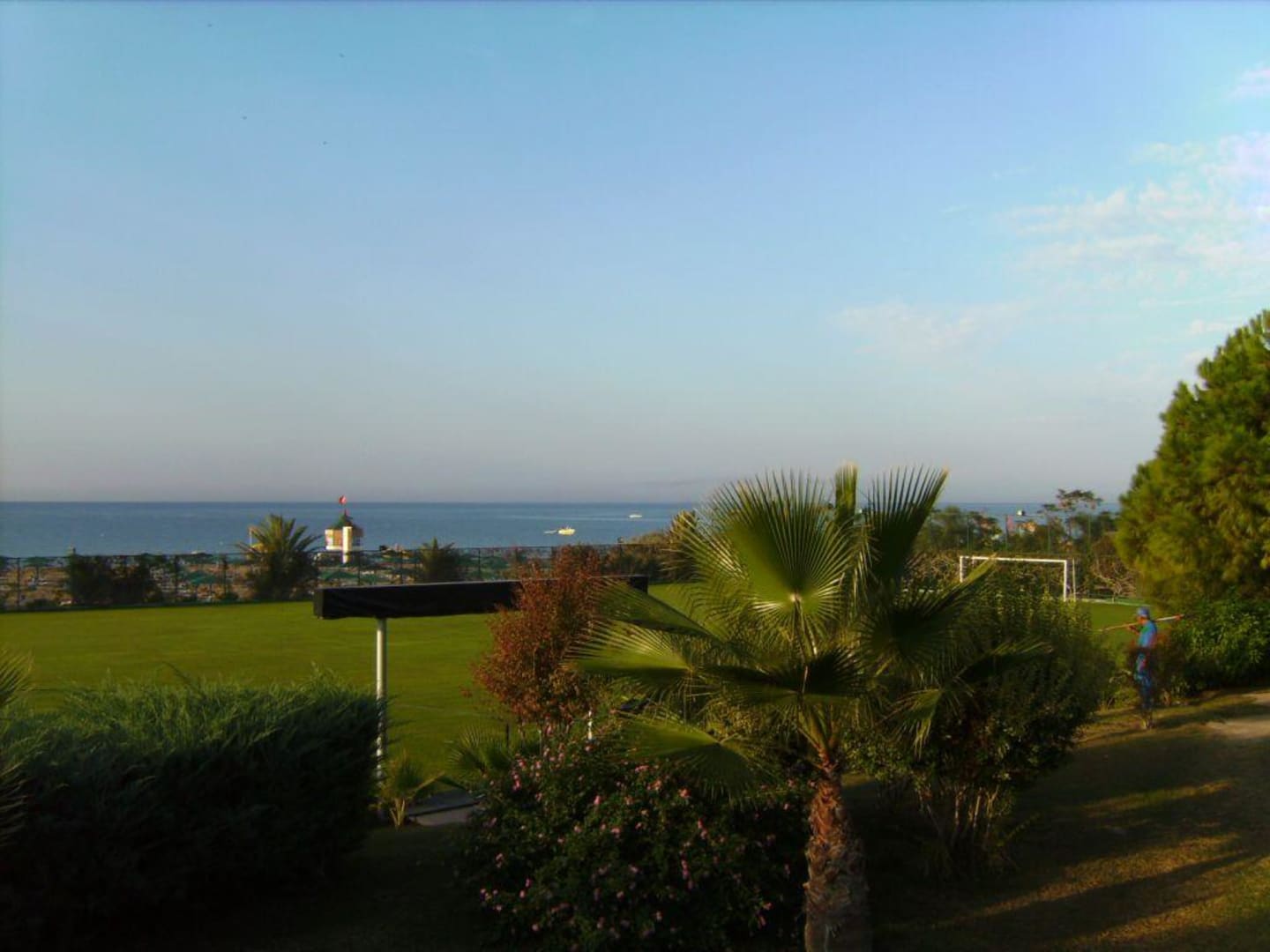 Blick über den Sportplatz aufs Meer