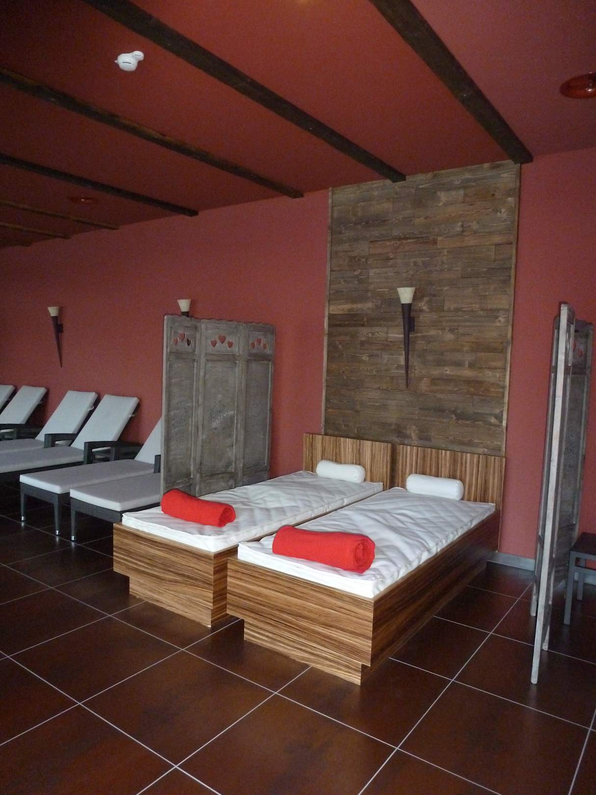 Gewärmte Wasserbetten im Ruheraum.