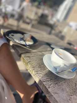 Cappuccino und Apfelstrudel im Spa-Bistro