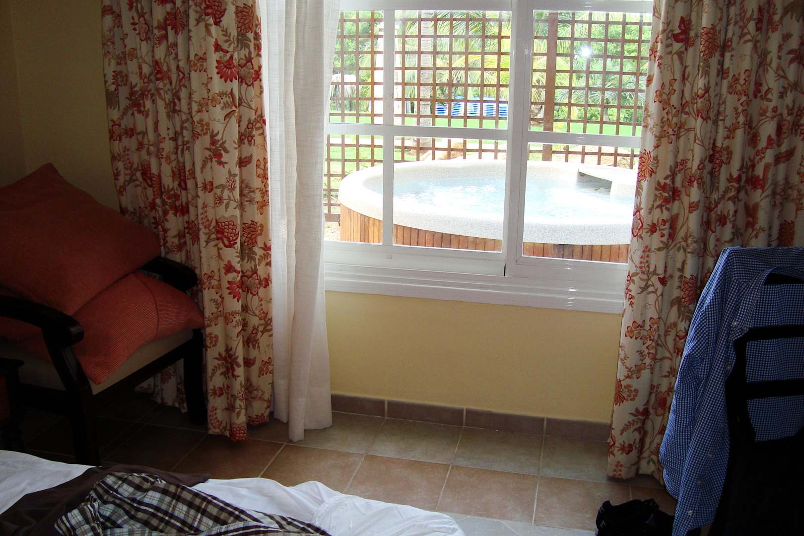 Schlafzimmerblick auf den Jacuzzi