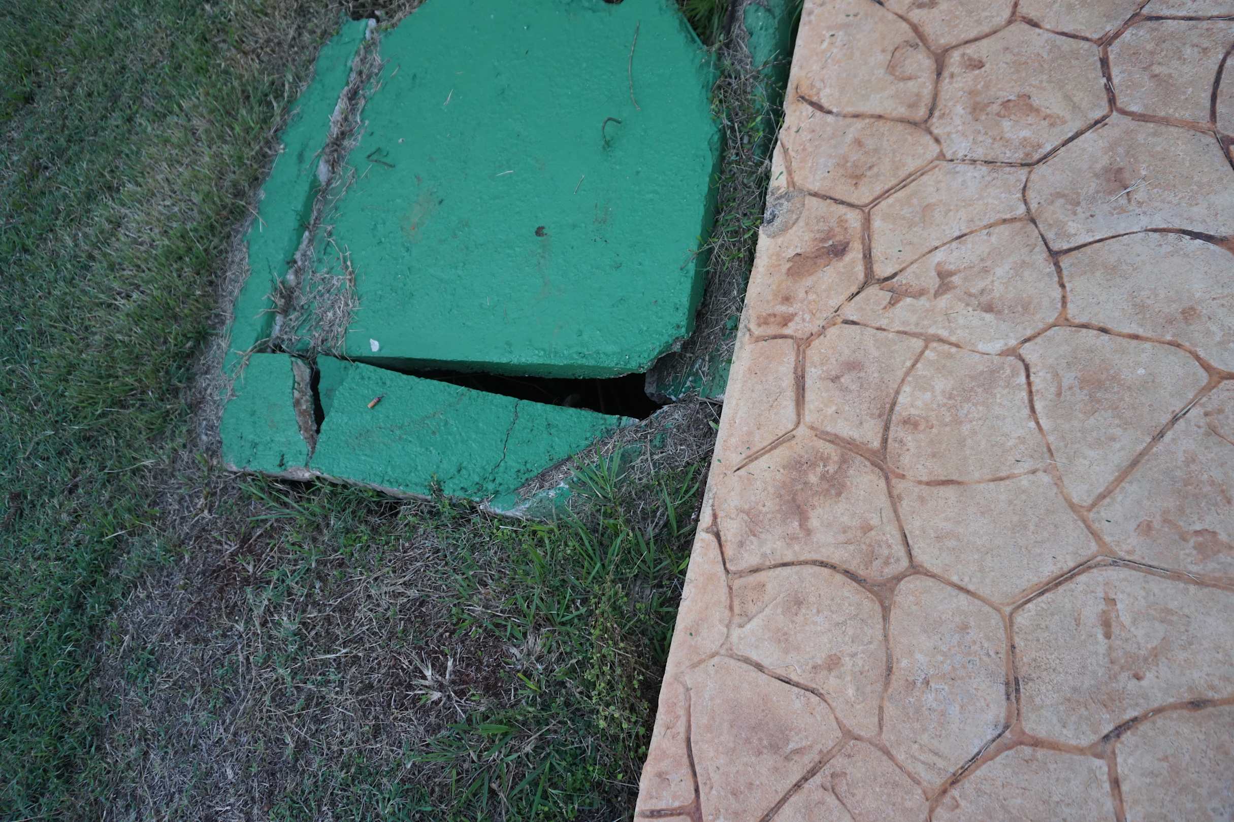 Defekte Bodenabdeckungen unmittelbar neben den Gehwegen gibt es zu hauf