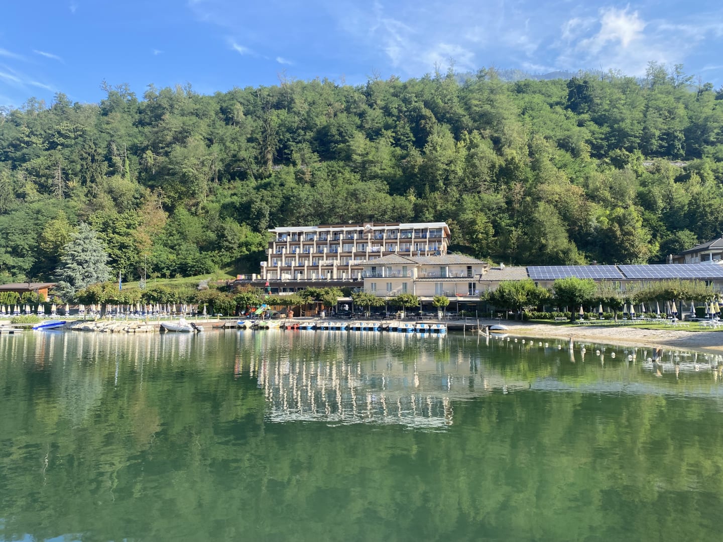 Hotel vom Elektroboot aus