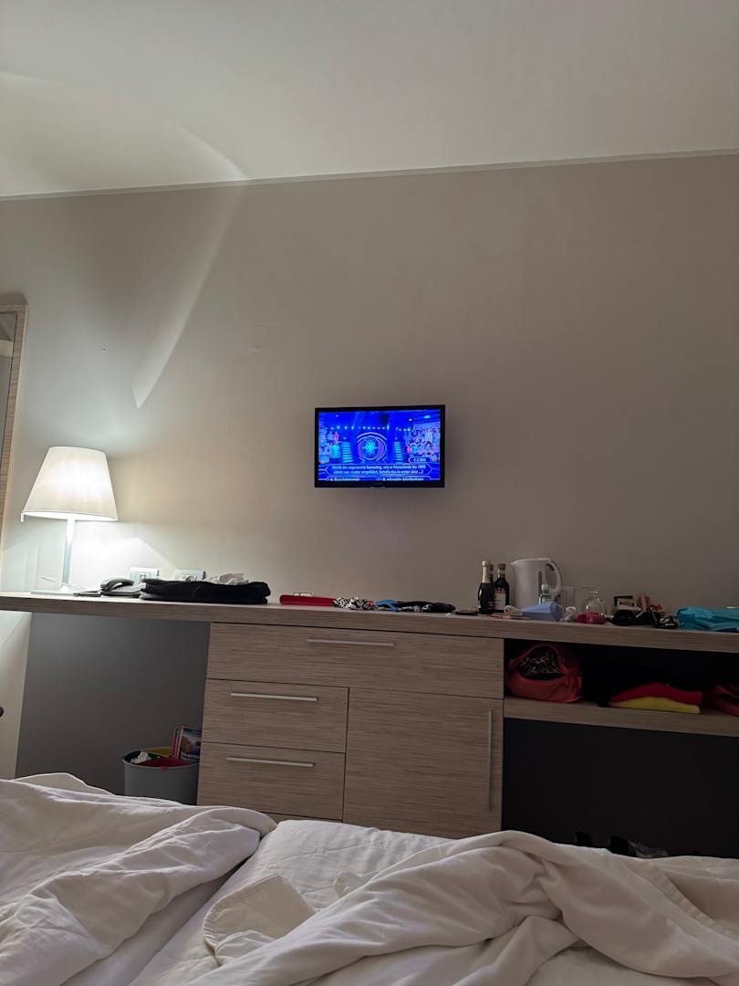 Der Fernseher ist eine Unverschämtheit, man muß sich 1 m vor den Fernseher setzen ansonsten konnte man nichts unterscheiden! Das ist nicht mehr Zeit gemäß! Wir waren nicht allein, sehr viele Menschen haben sich beschwert!