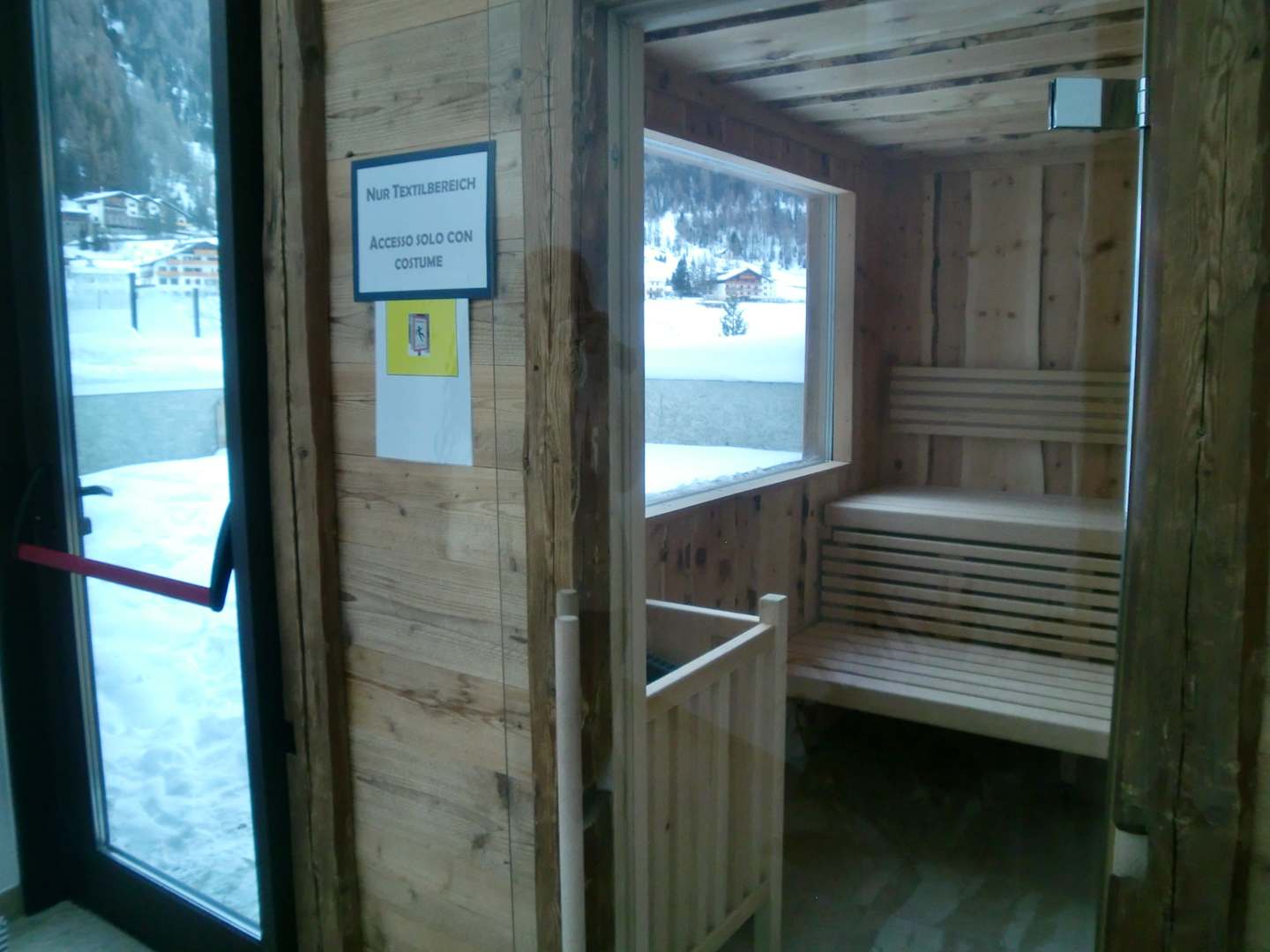 Sauna mit Blick auf den Außenpool