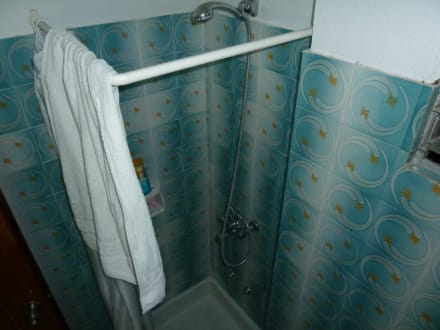 Auch als schlanker Mensch ist hier Kuscheln mit dem Duschvorhang angesagt.