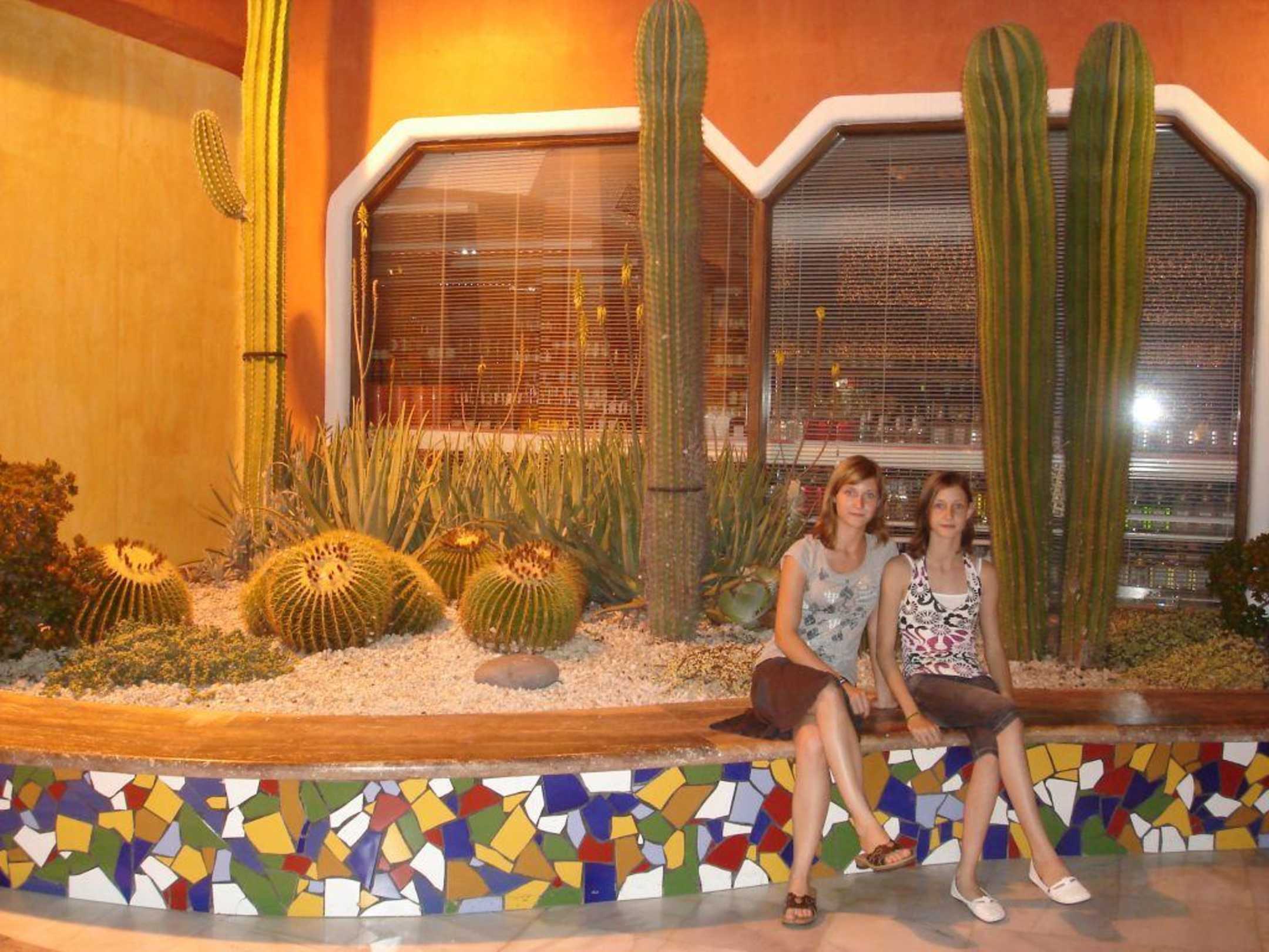 Wunderschön gestaltet. Überall Kakteen mit Mosaik.