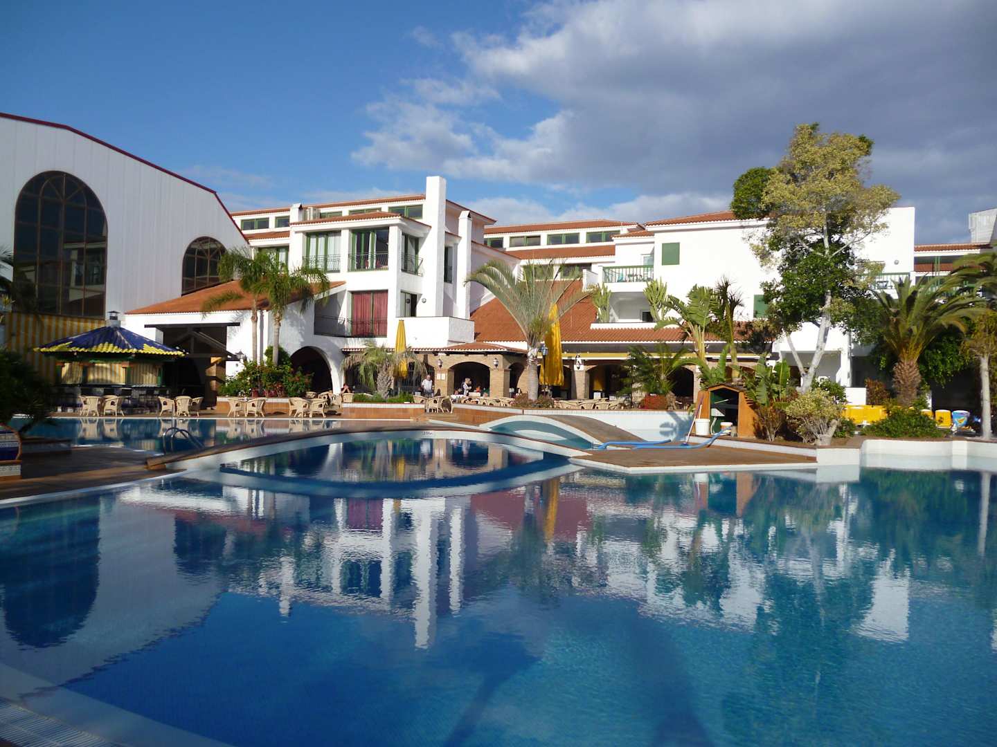 Pool, Hintergrund Haupthaus, links Showbühne