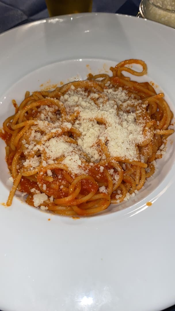 Dicke Spaghetti mit einer guten Tomatensauce.