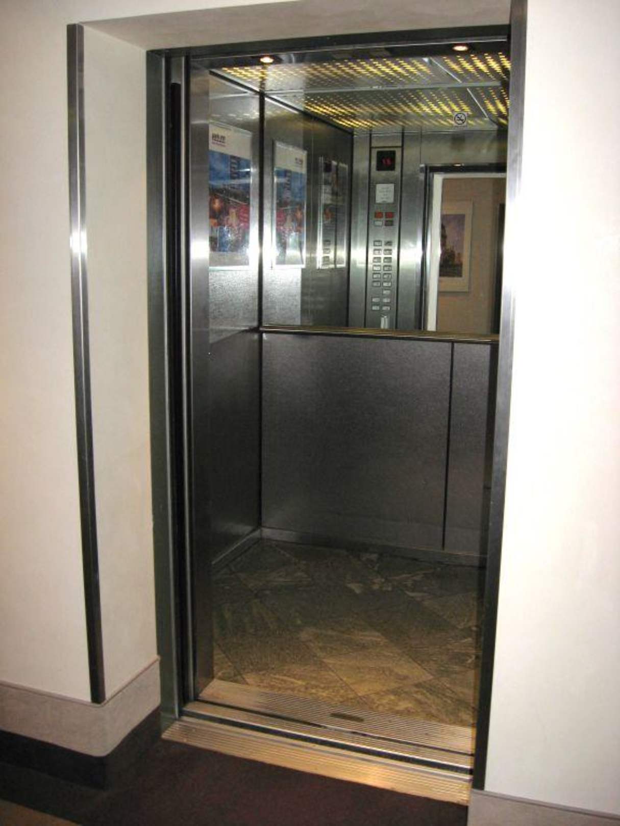 AufzugDie Wartezeiten an den Aufzügen sind sehr kurz, da sie sehr schnell fahren. Jeder Aufzug kann bis zu 18 Personen befördern.
