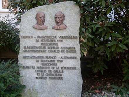 Gedenkstein vor dem Hoteleingang für das hier stattgefundene historische Treffen zwischen Konrad Adenauer und Charles de Gaule am 26.11.1958.