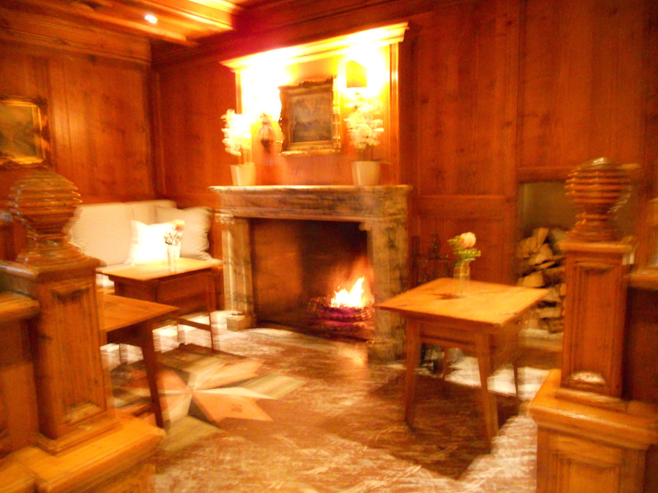Gemütlicher Empfangbereich mit Kaminfeuer