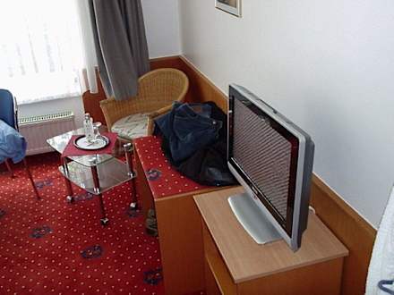 Blick in das Zimmer mit Flachbildschirm