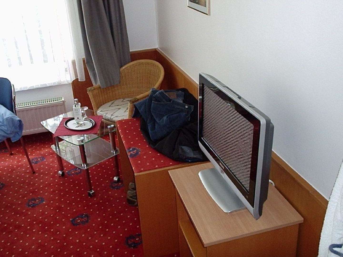 Blick in das Zimmer mit Flachbildschirm