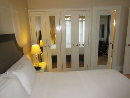 Schlafzimmer, Safe, Bügeleisen und Bügelbrett im Schlafzimmerschrank vorhanden.