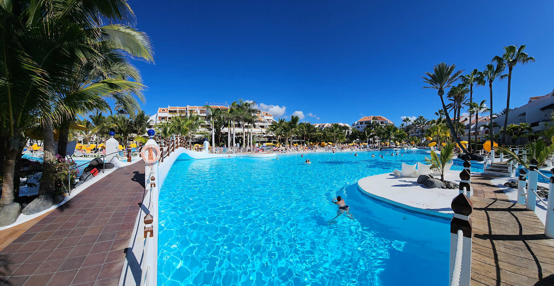 Großer Pool rechts und links der Brücke