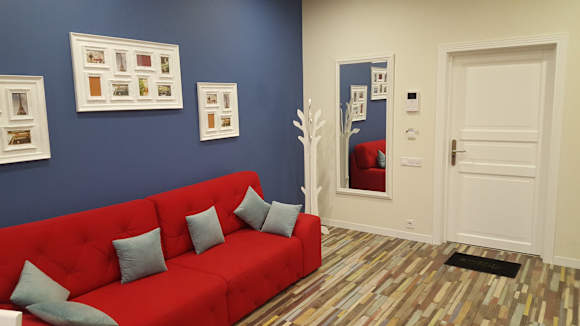 Wohnzimmer. Rechts die Eingangstür zum Apartment.