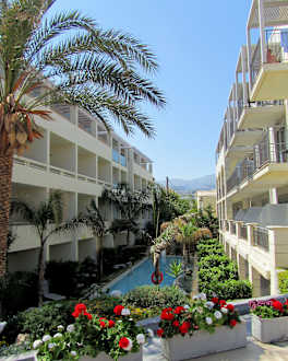Blick auf Pearl Beach (li) und Aegean Pearl (re)