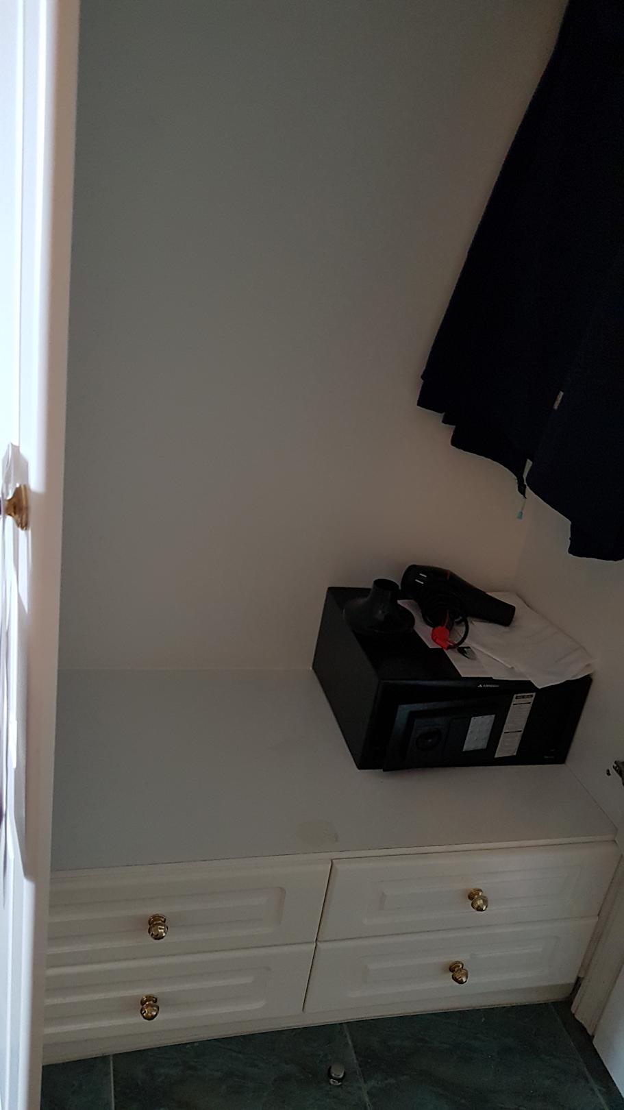 1 Wandschrank ohne Böden, 4 Schubfächer, kein weiterer Stauraum