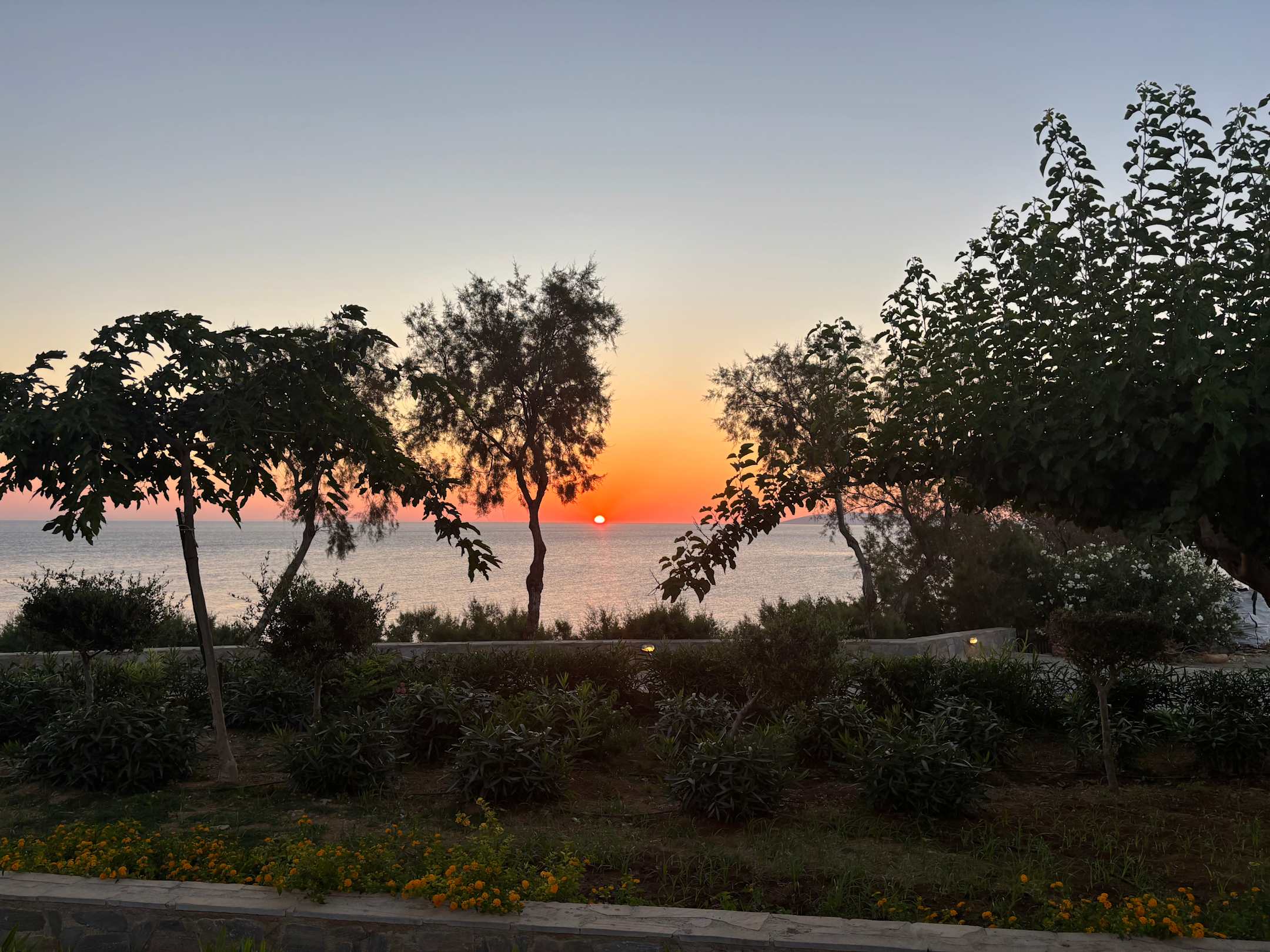 Sonnenaufgang mit Blick von der Zimmerterrase