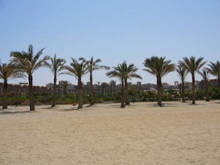 Blick vom Strand in Richtung Hotelanlage