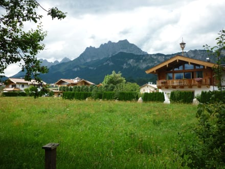 Ein toller Ausblick vom Garten in Richtung Wilder Kaiser.
