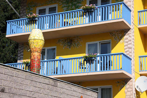 Balkon mit direkt davorliegendem Abluftrohr  Pension Loving Hut