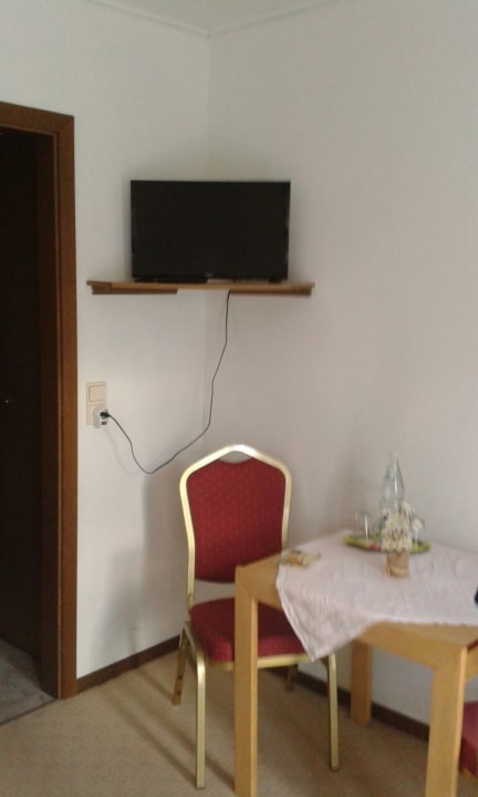 Sitzecke besteh. aus 2 Stühlen und eckiger Tisch. Leider keine weitere Ablagemöglichkeit.
