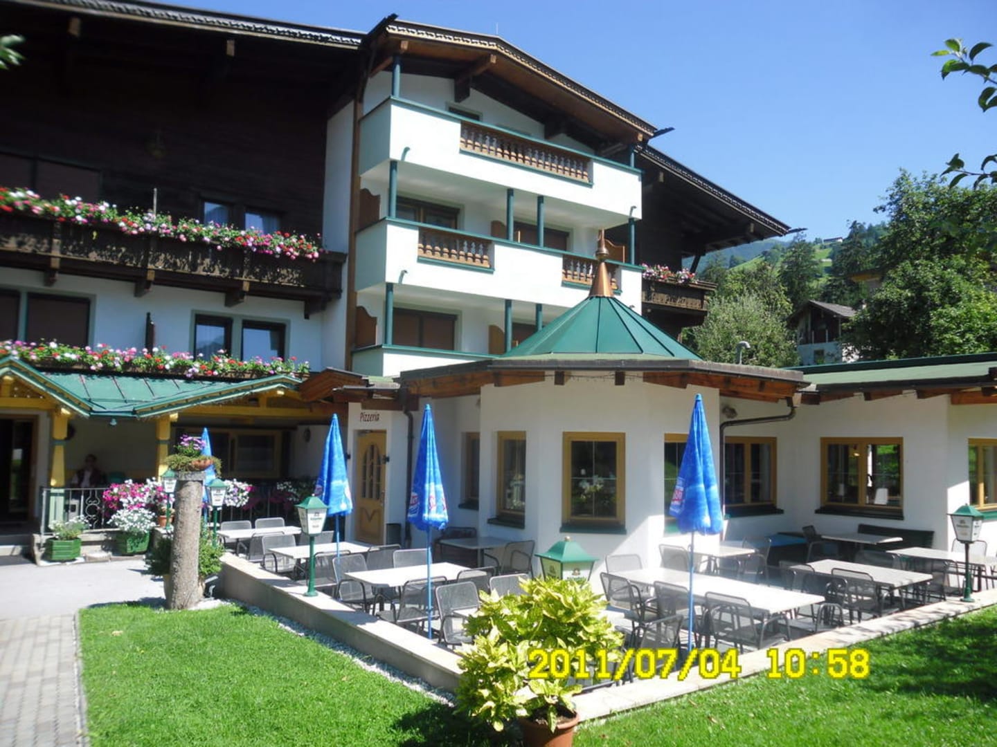 Sehr schöne Pizzeria, zur Pension gehörig, mit guten Sitzmöglichkeiten zum Speisen im Freien