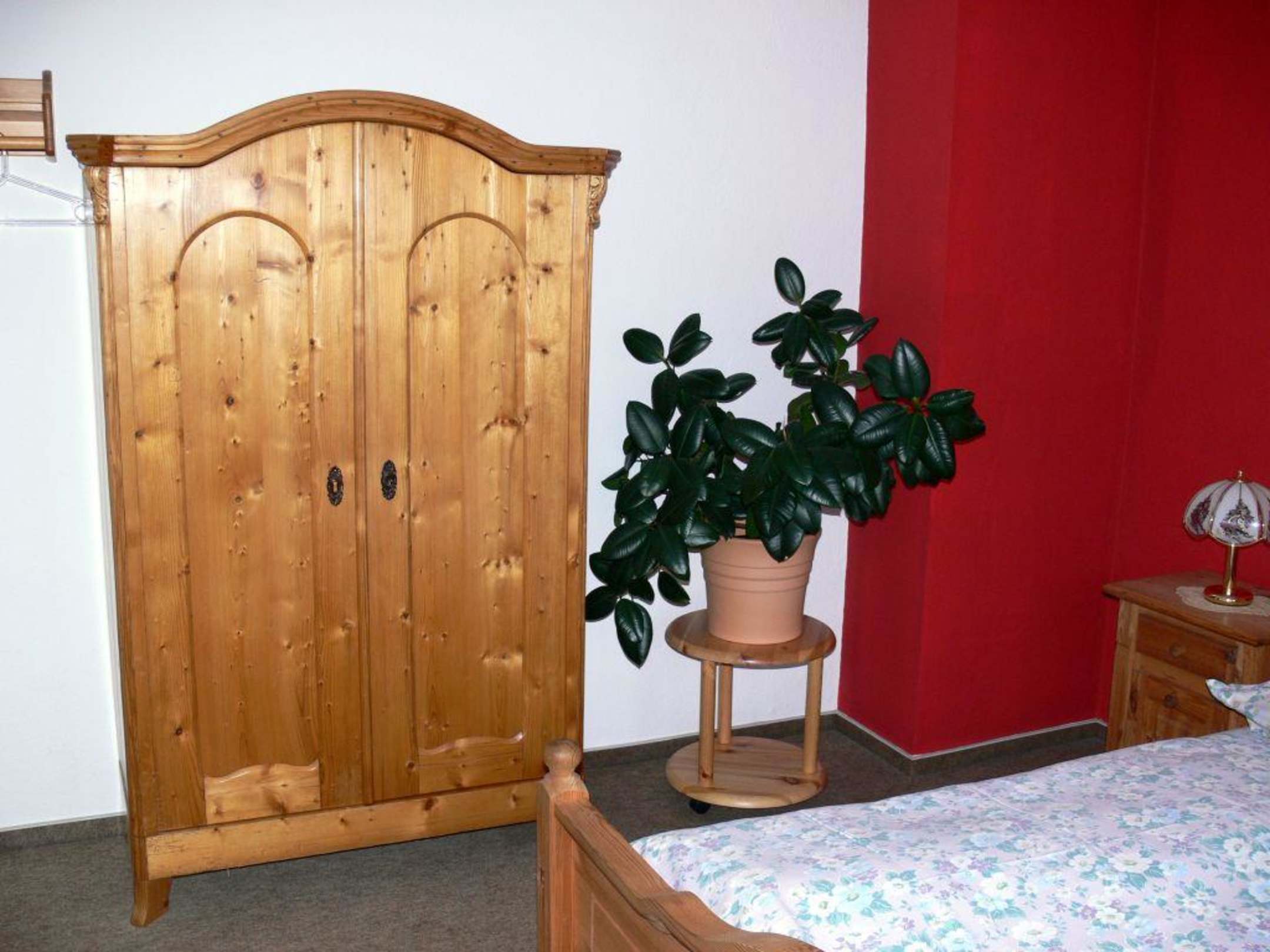 Die Zimmer in der Pension Sonnenblick sind alle sehr geschmackvoll eingerichtet. Hier ein Teil des Schlafzimmers mit dem Kleiderschrank.