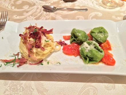 Ravioli selbstgemacht und Spaghetti Carbonara