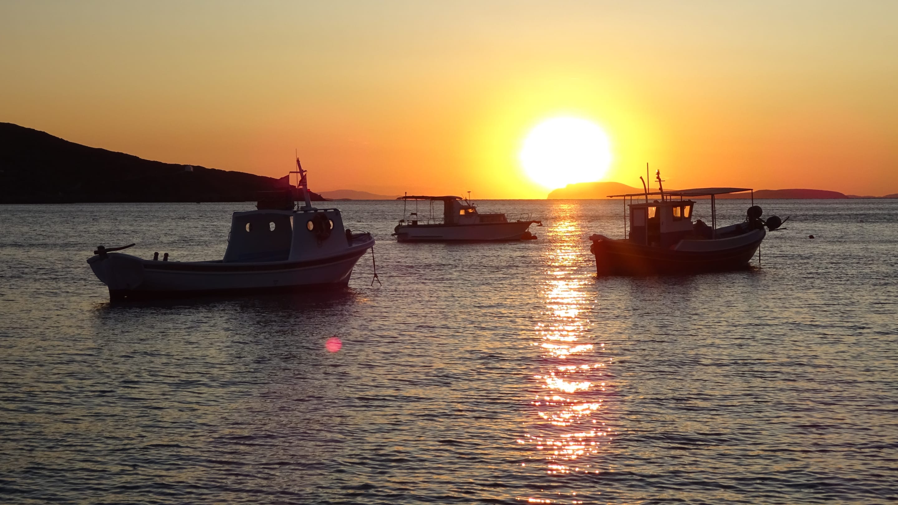 Sonnenuntergang, direkt vor der Pension Titika