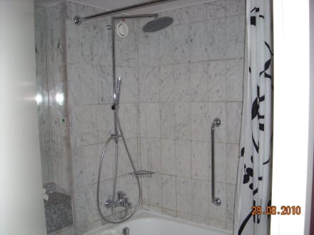 Bild zeigt die Dusche mit grossem Duschkopf und kleiner Handbrause.