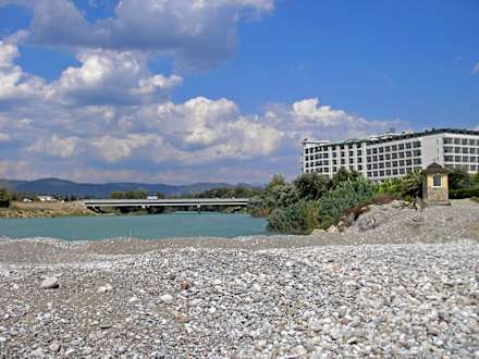 Blick auf Hotel und Fluss Alara