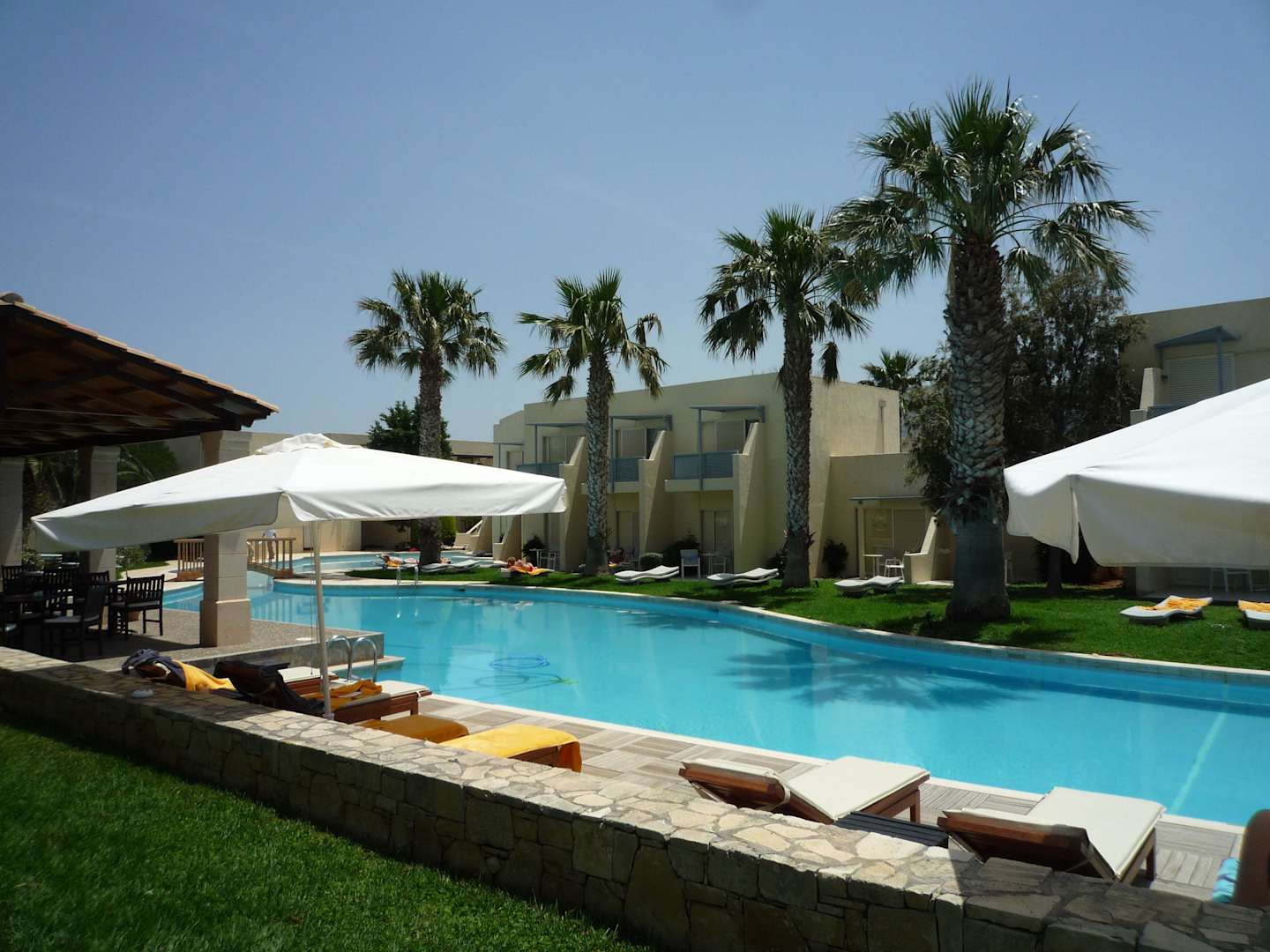 Blick auf die Zimmer mit Liegewiese