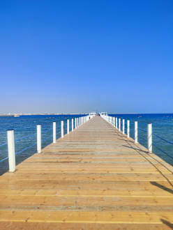 Steg am Strand. Weiter hinten kann man ins Wasser zum Schorcheln
