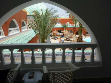 Balkon mit Aussicht auf Pool