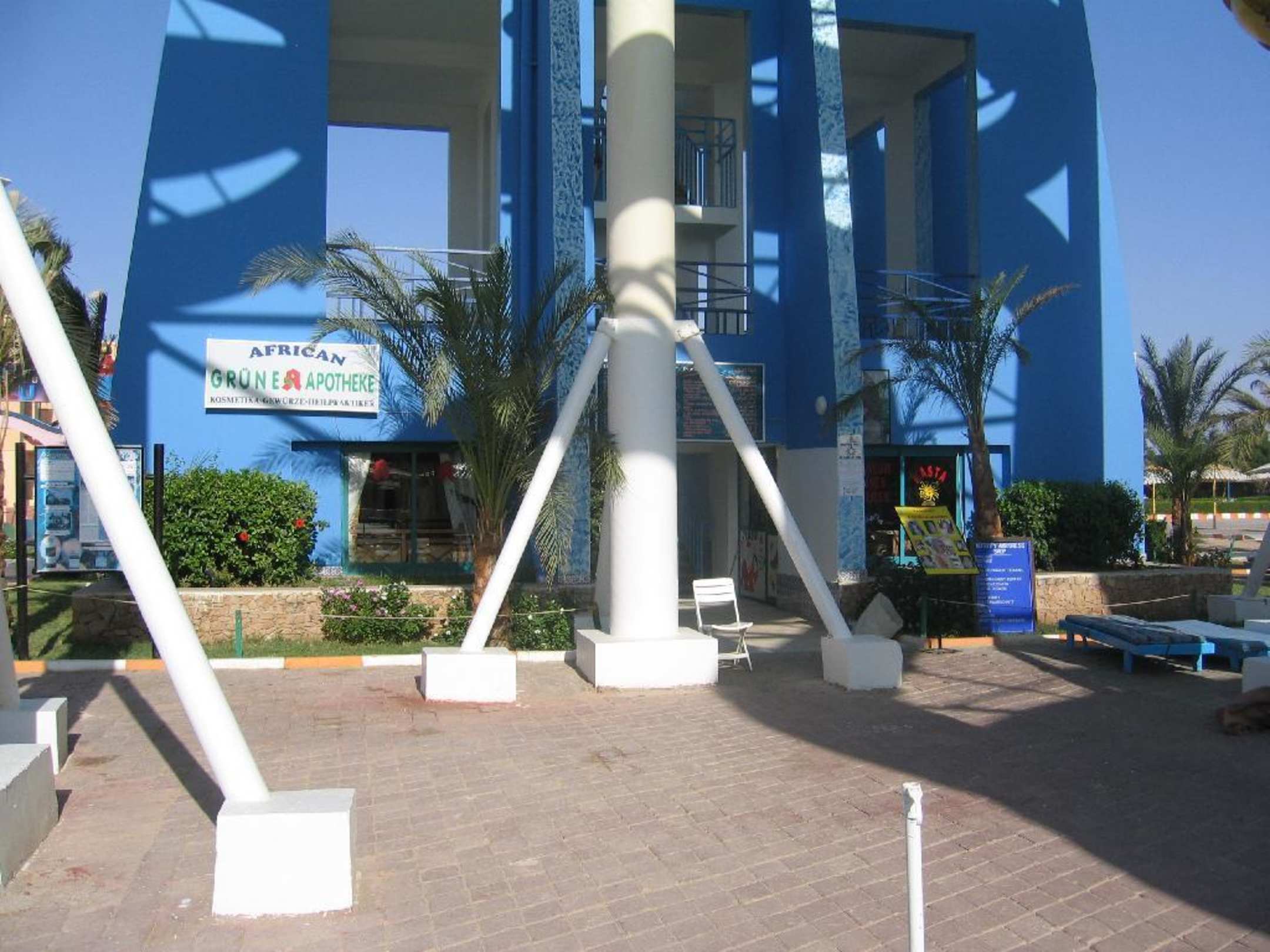 Apotheke und Frisör unterhalb der Rutsche