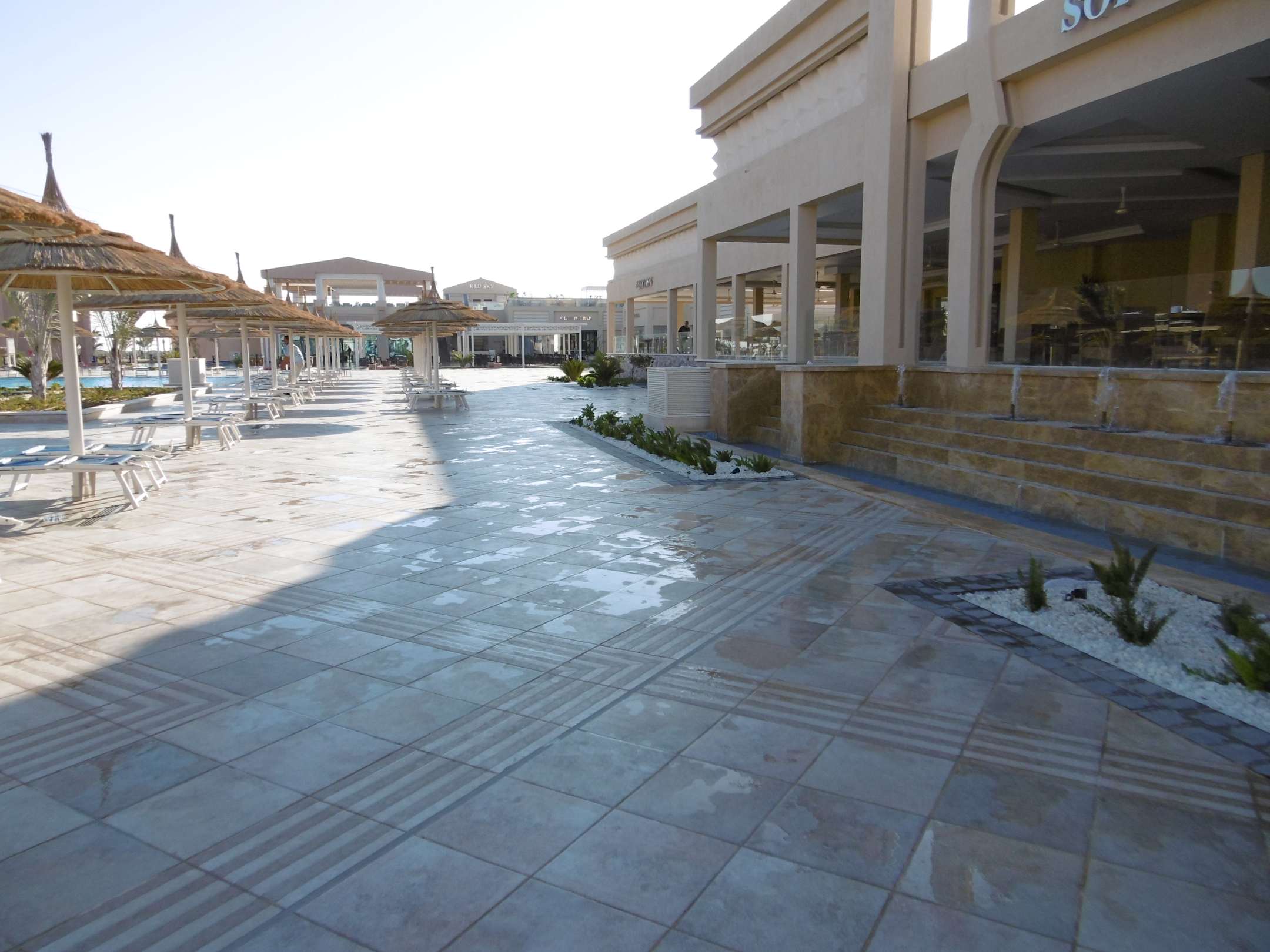 Rechts die Restaurants